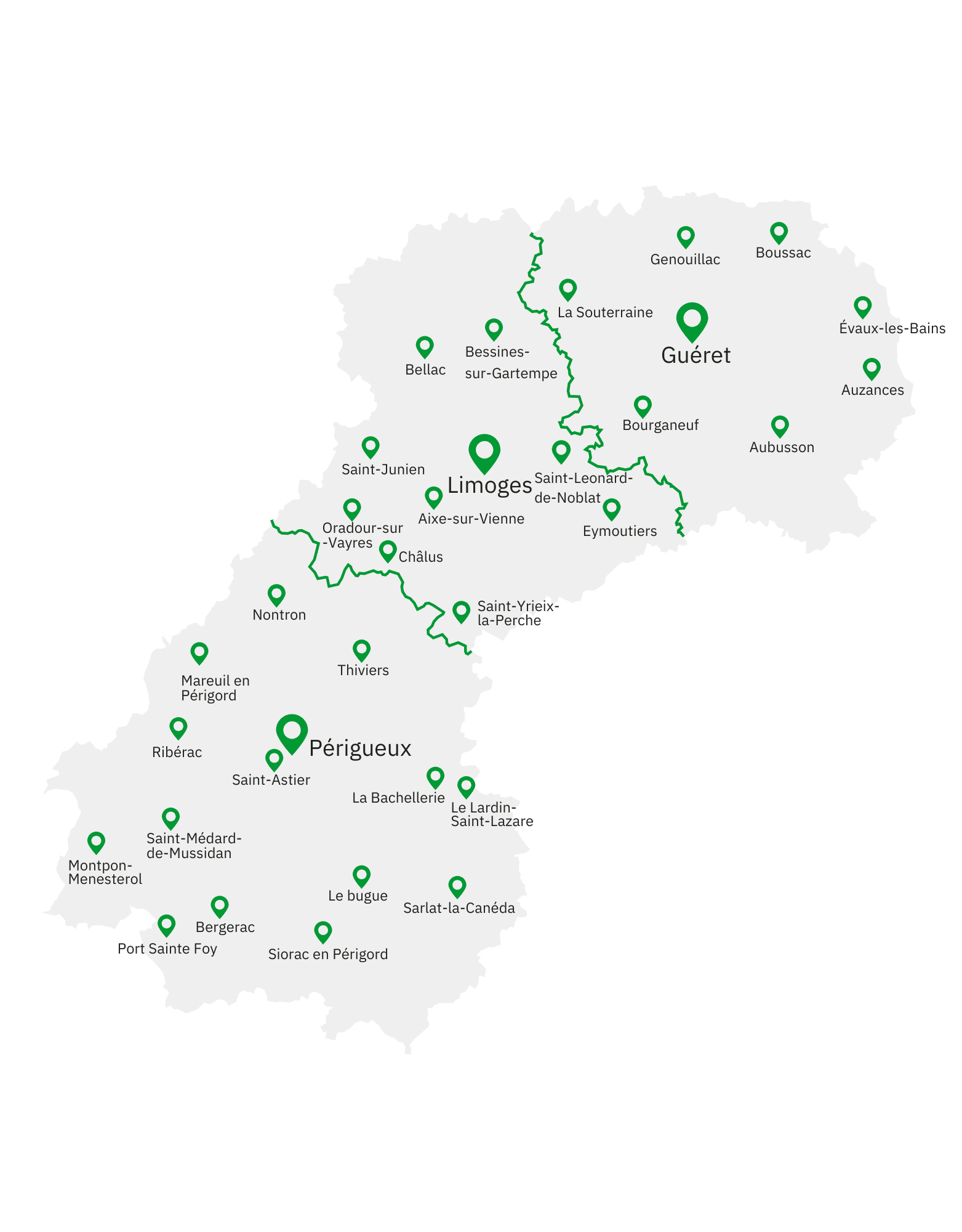 Consultez nos centres de visite et locaux d'appoint en Haute-Vienne, Creuse et Dordogne ci-dessous.
